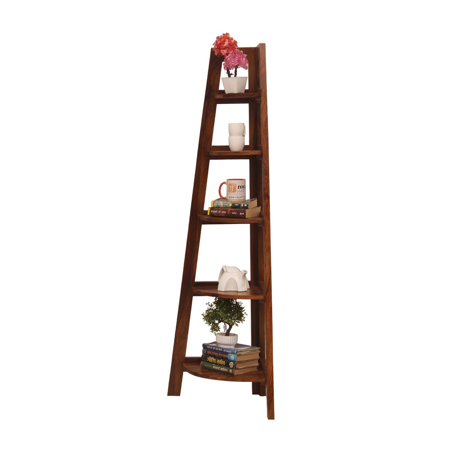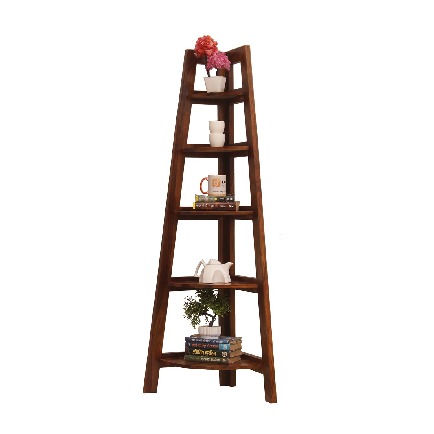 Thecsr 5 Shelves Assorted Bookshelf in Natural Honey In Sheesham Wood
