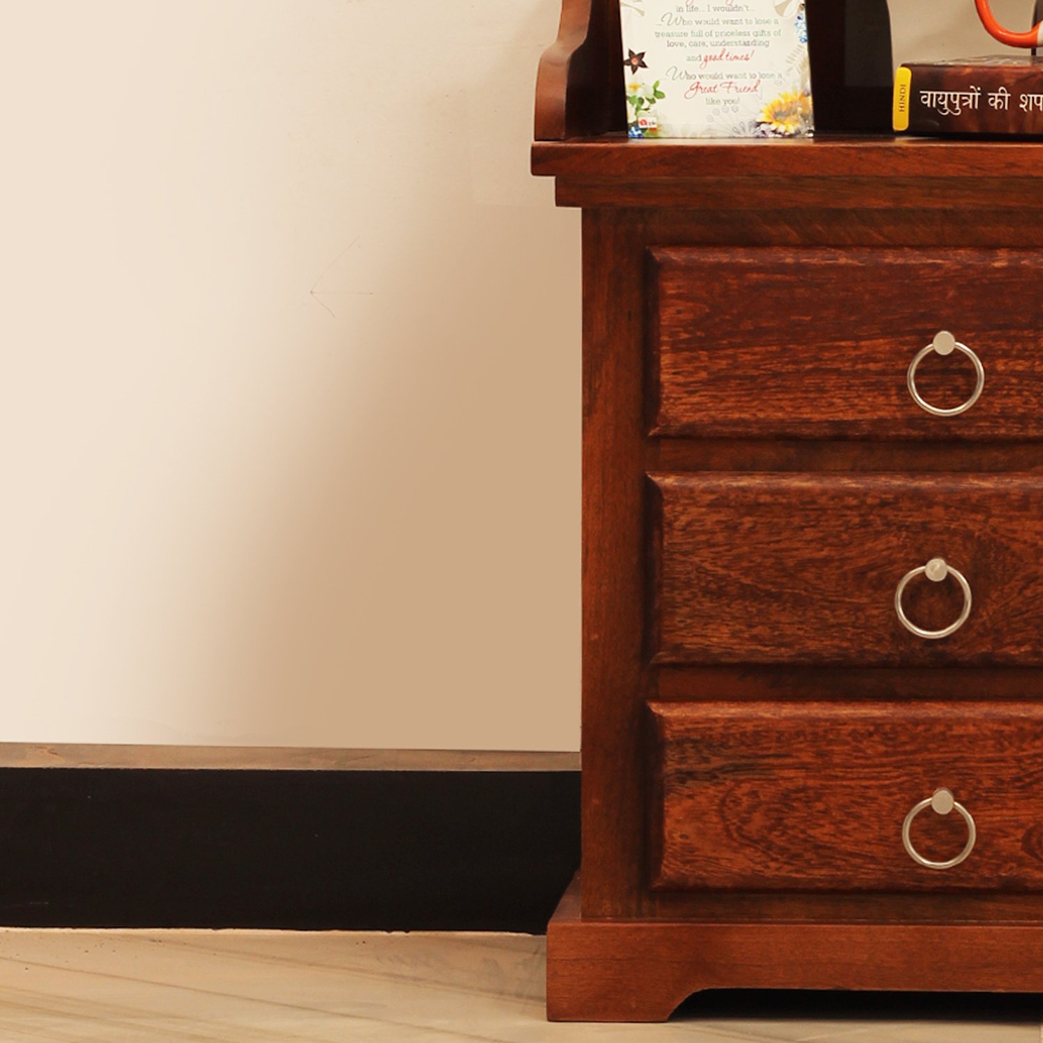 Introducing our Mango wood bedside table with 3 drawers, designed to add both style and functionality to your bedroom. Here are the key features that make this product stand out: