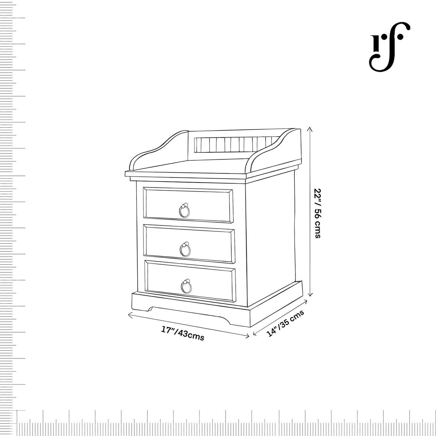 • Dimensions: Length – 43 CM, Width – 35 CM, Height – 56 CM, with three spacious drawers that provide ample storage space for your bedside essentials.
