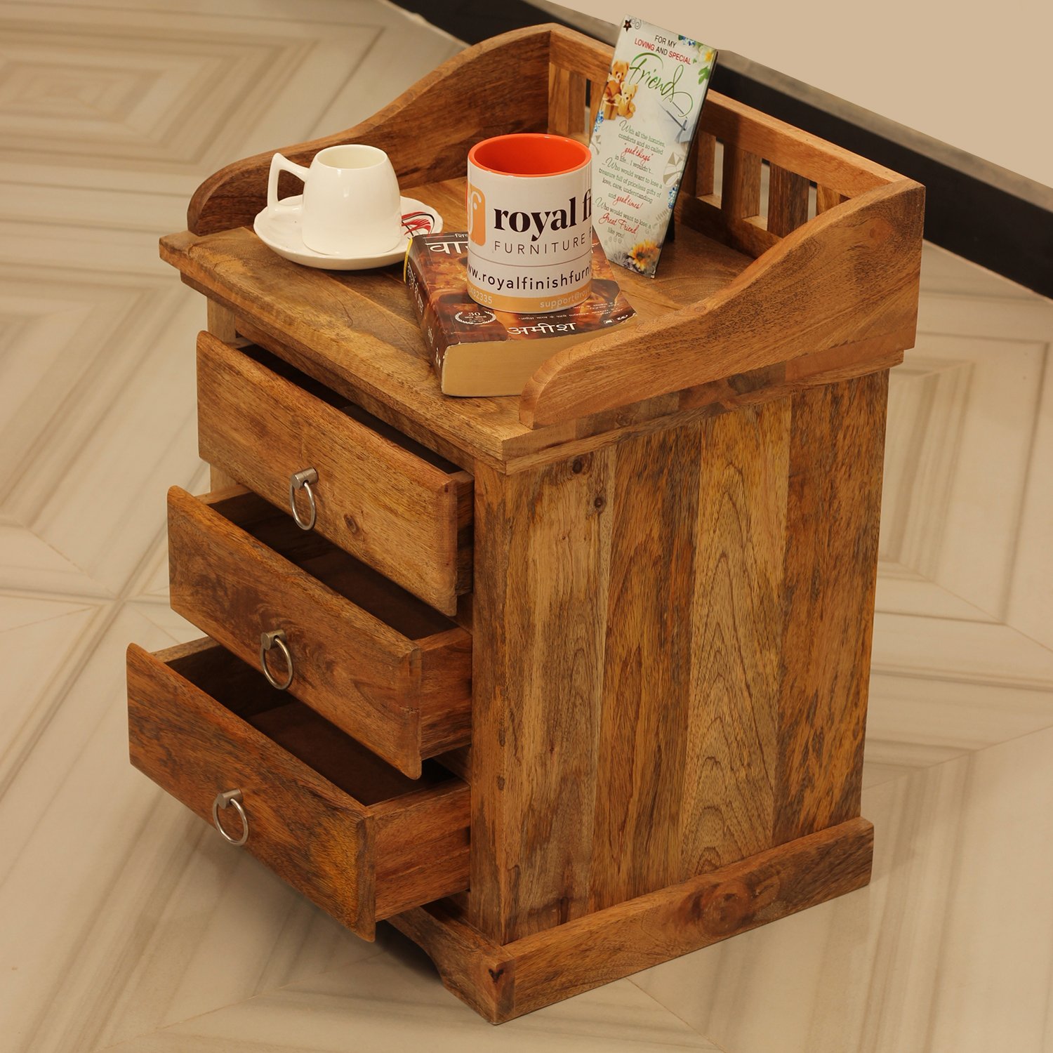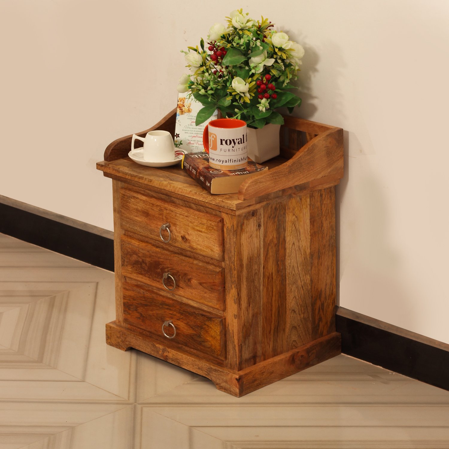 Introducing our Mango wood bedside table with 3 drawers, designed to add both style and functionality to your bedroom. Here are the key features that make this product stand out: