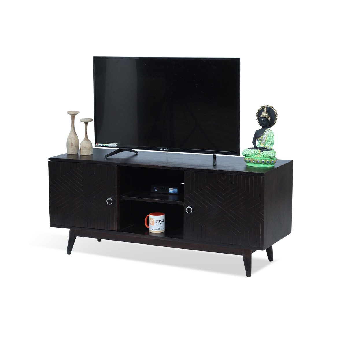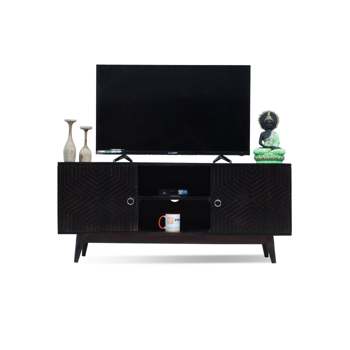 - TV Material: Solid Wood – Premium Quality Furniture Sheesham Wood in Natural Black Carbon Colour with Matte polish finished.