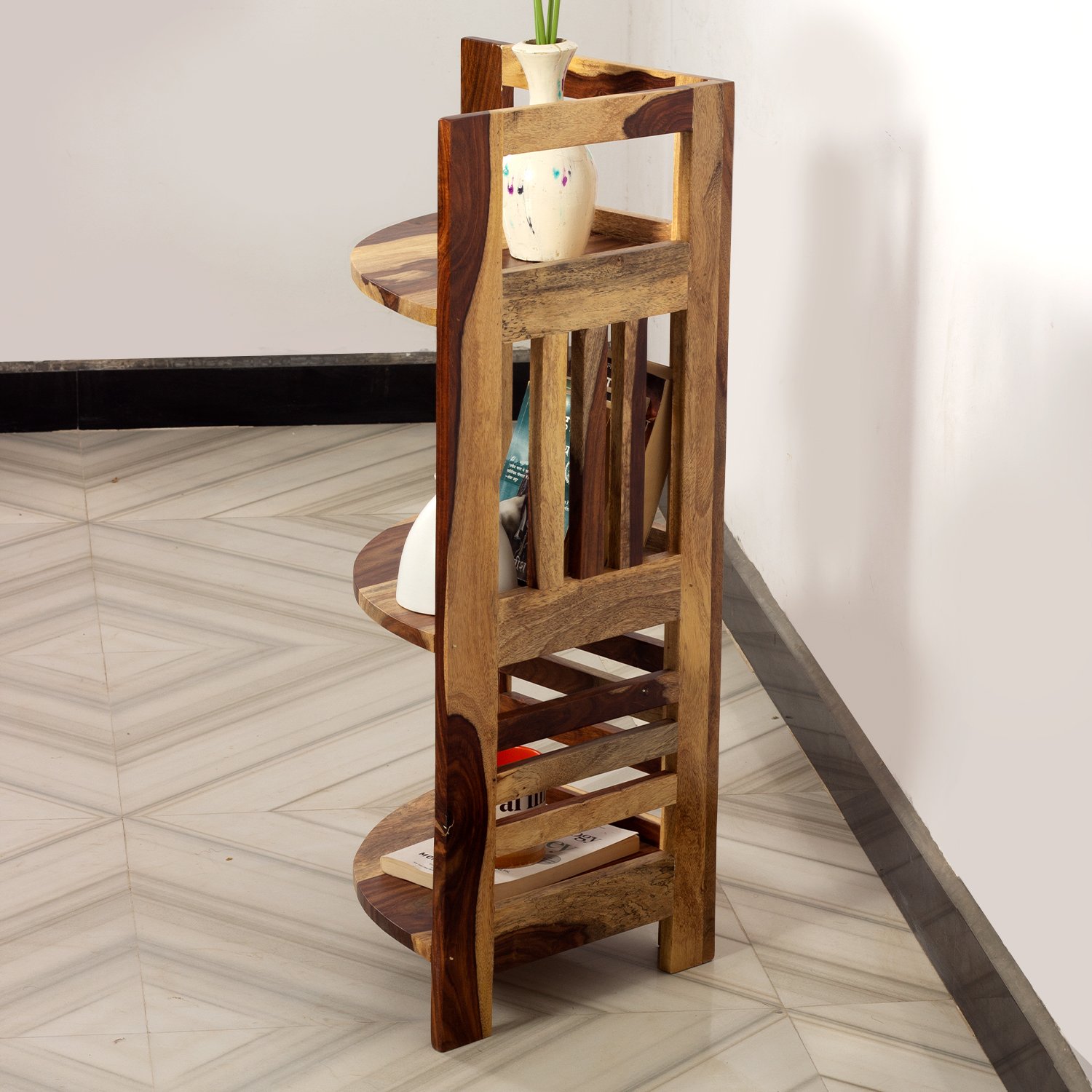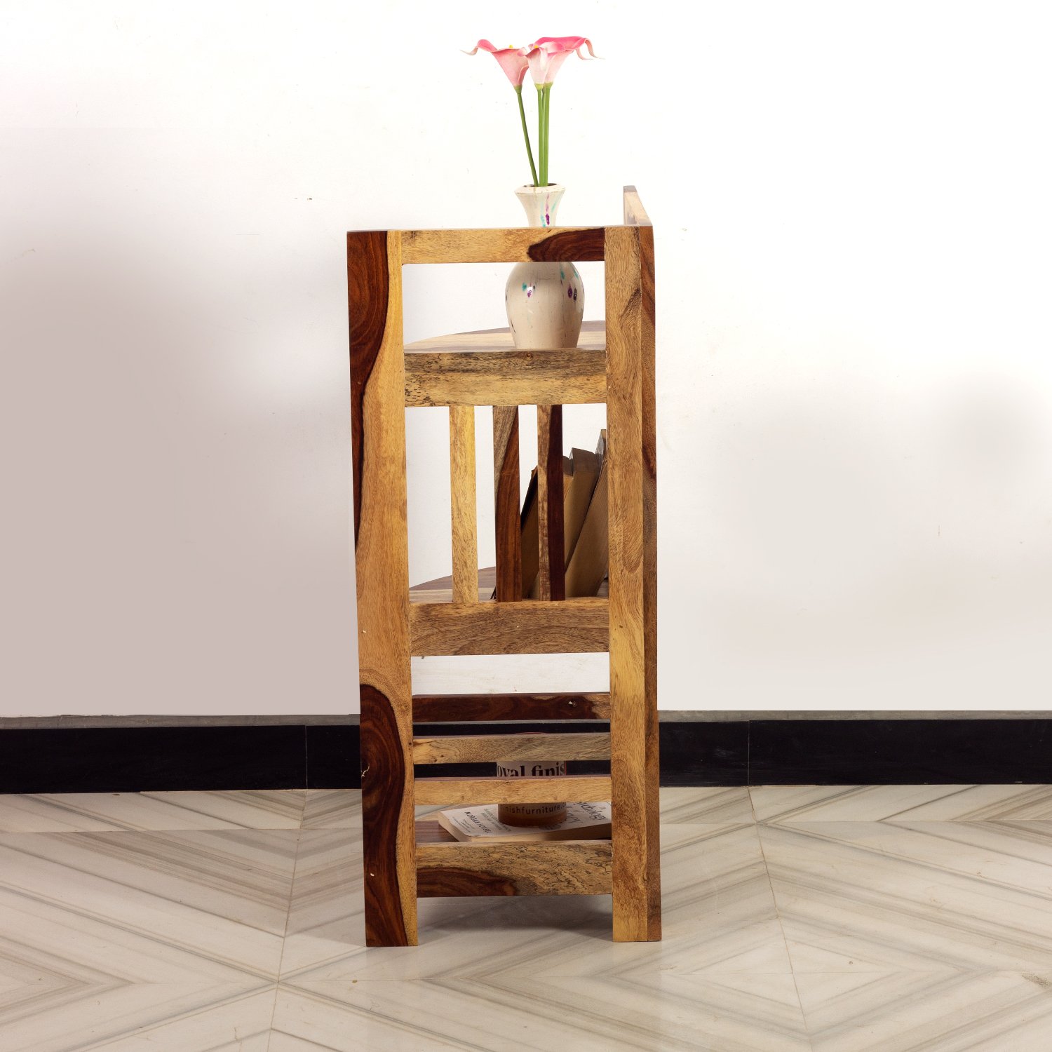 Durable Sheesham Wood: Crafted from premium Sheesham wood, this unit is not only stylish but also built to last, featuring rich grain patterns that add a touch of elegance to your home.