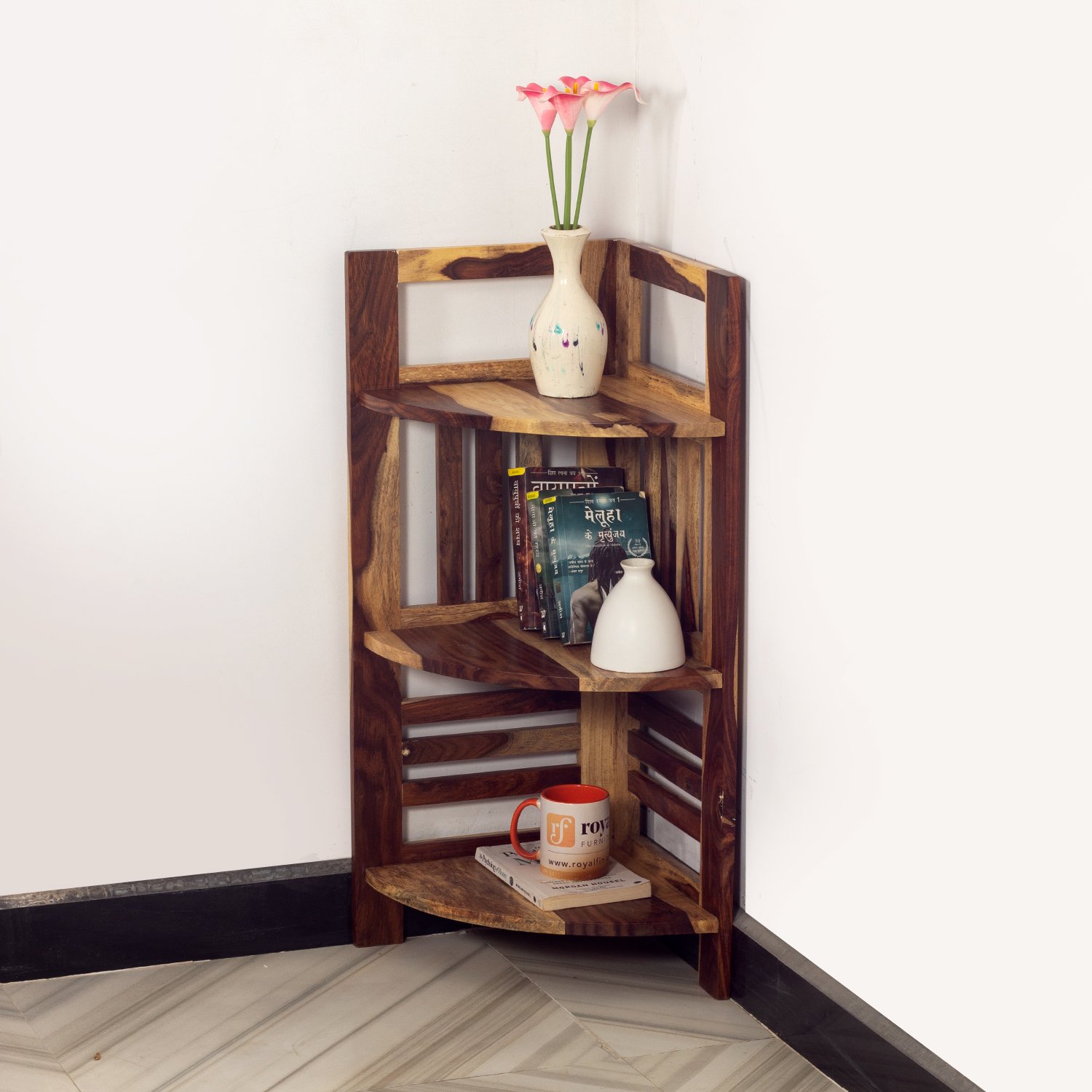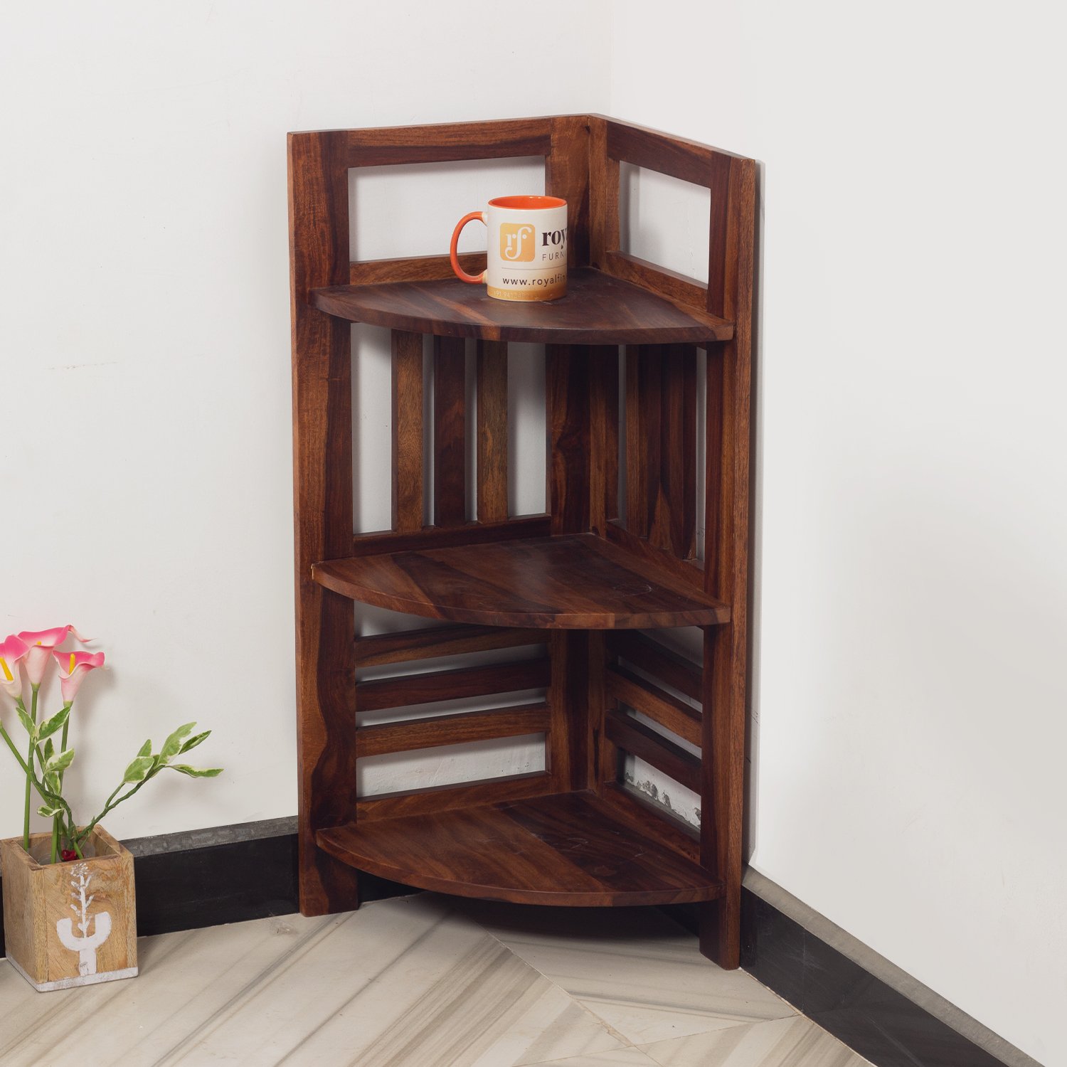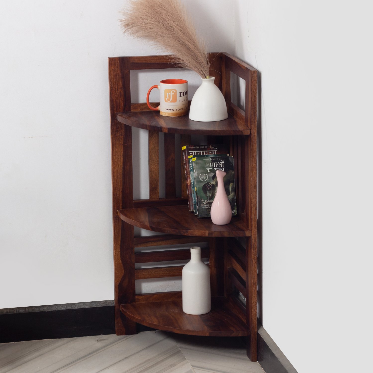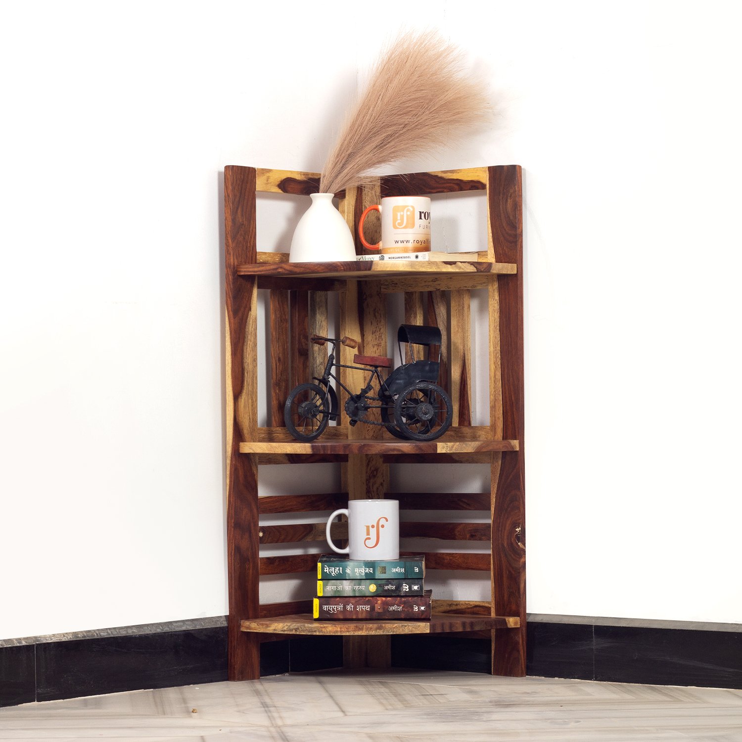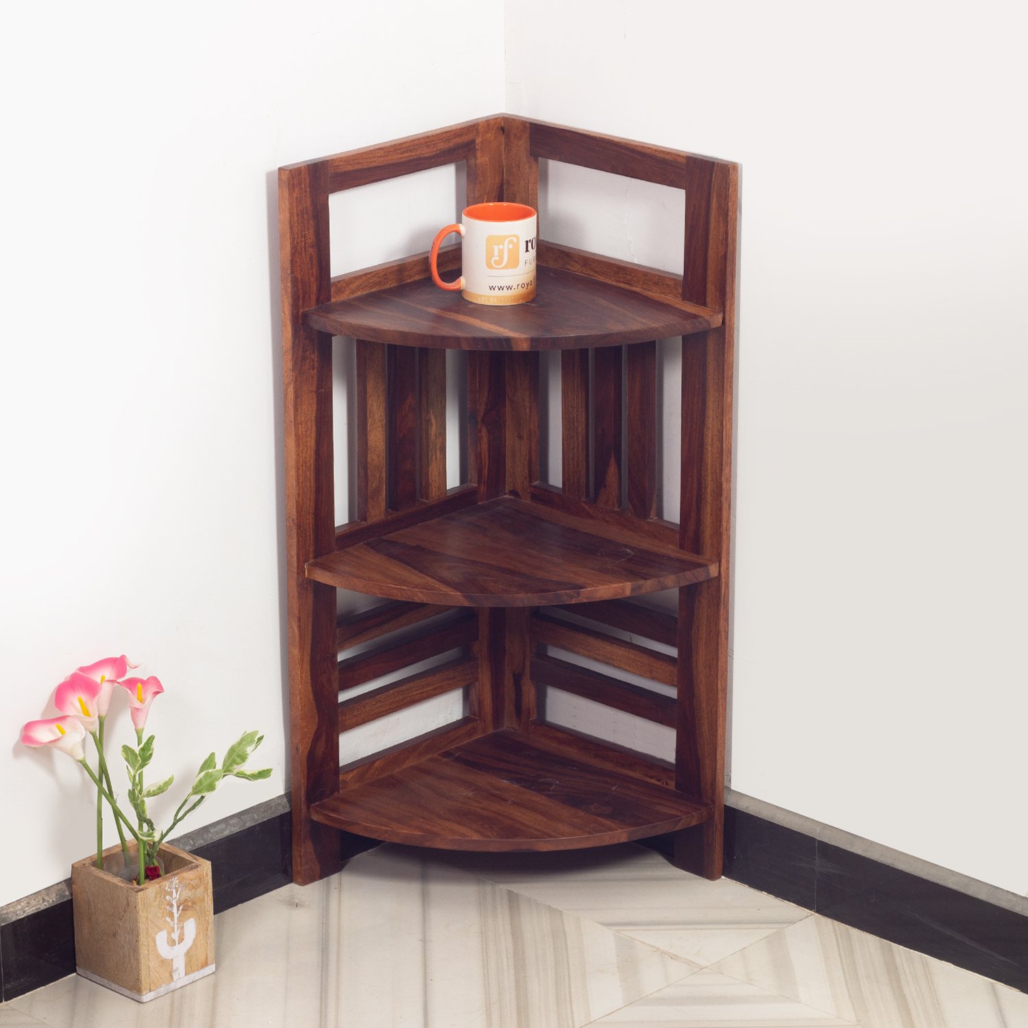 Thecsr classic Sheesham Wood Corner Shelving Unit, 3 Shelves, 35.5 x 35.5