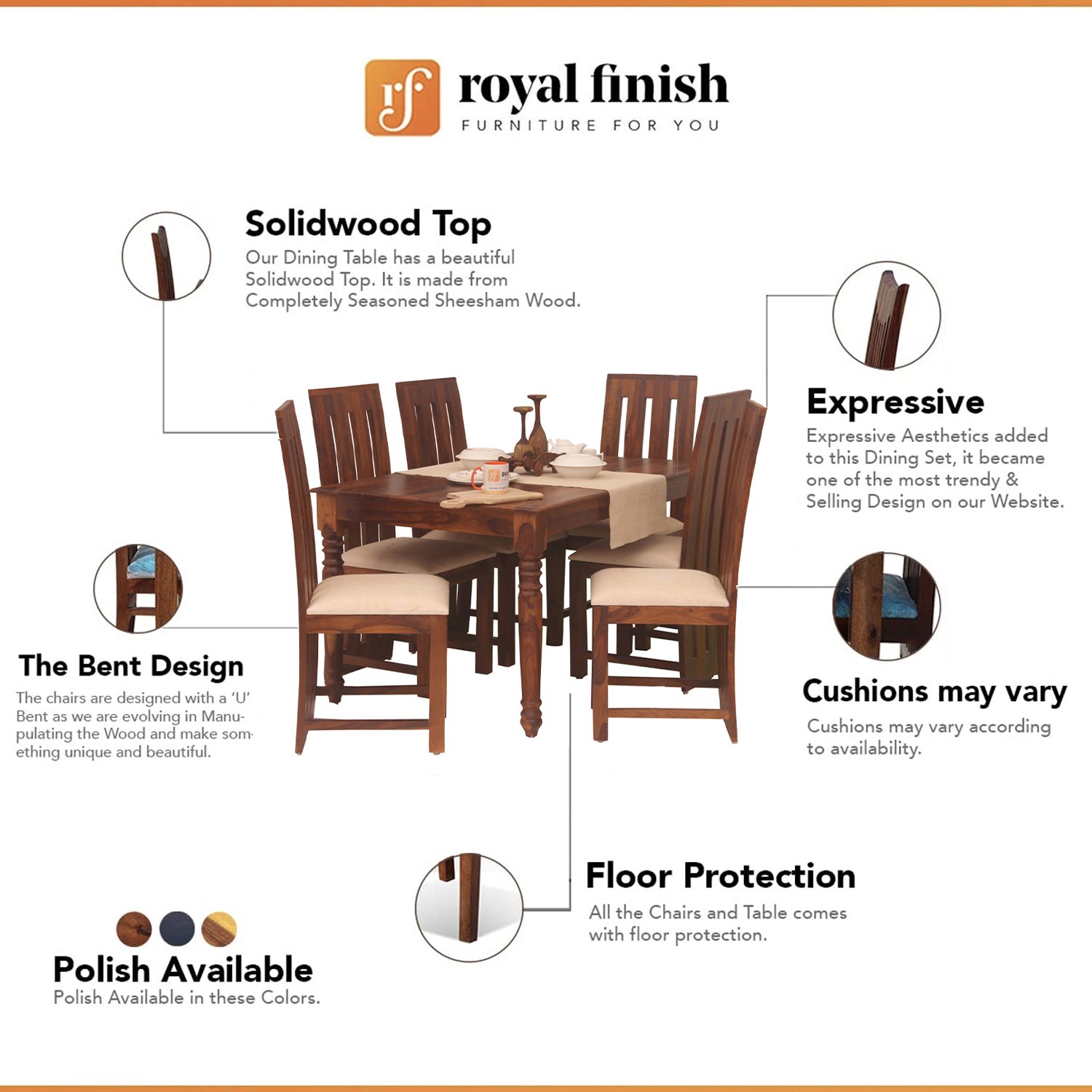- Support: We provide pre-sell and after-sell support services On Mobile, Email, and WhatsApp. Customers can contact during Working hours on +919462682335 for Mobile and WhatsApp and For Email: royalfinishfurniture@gmail.com
