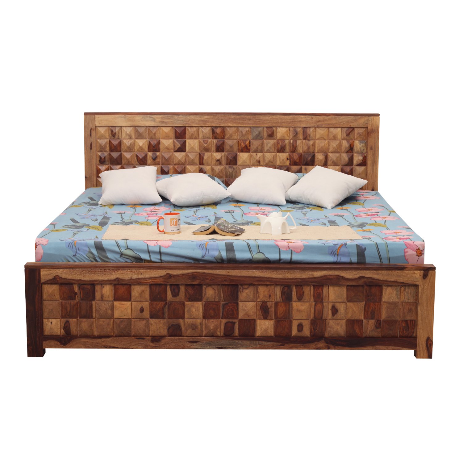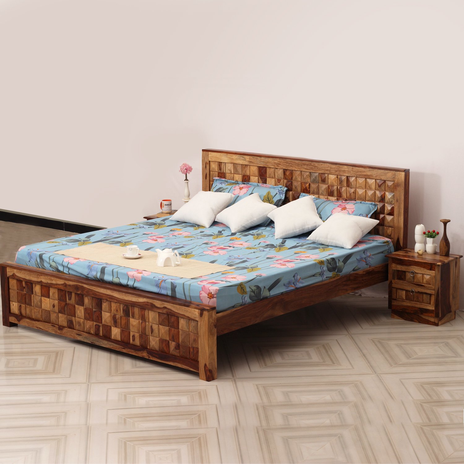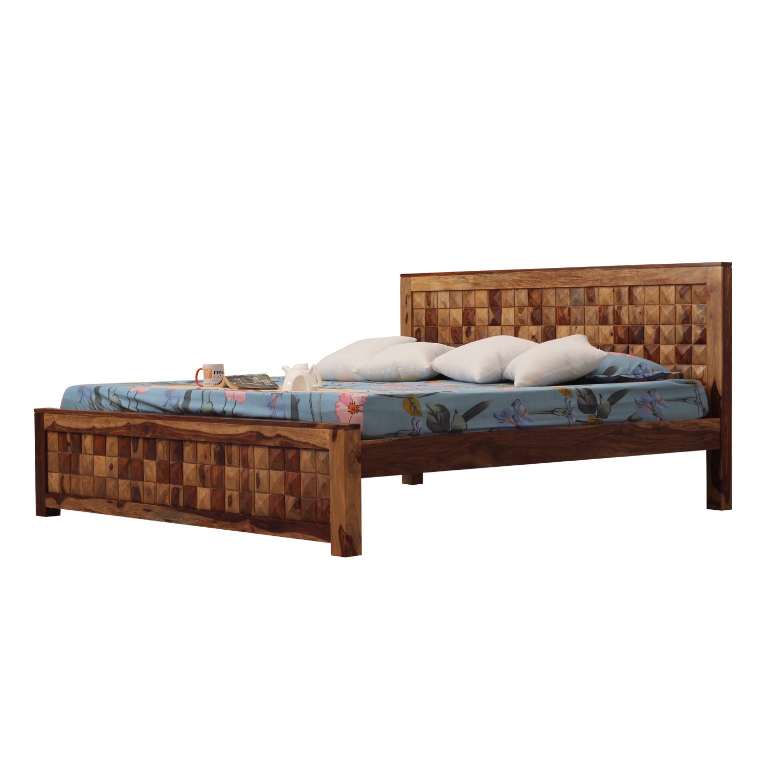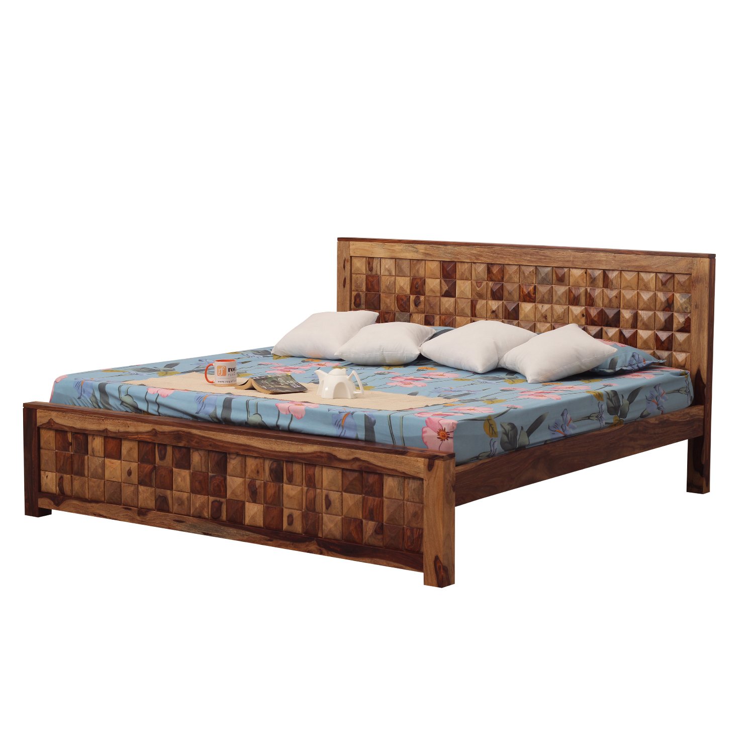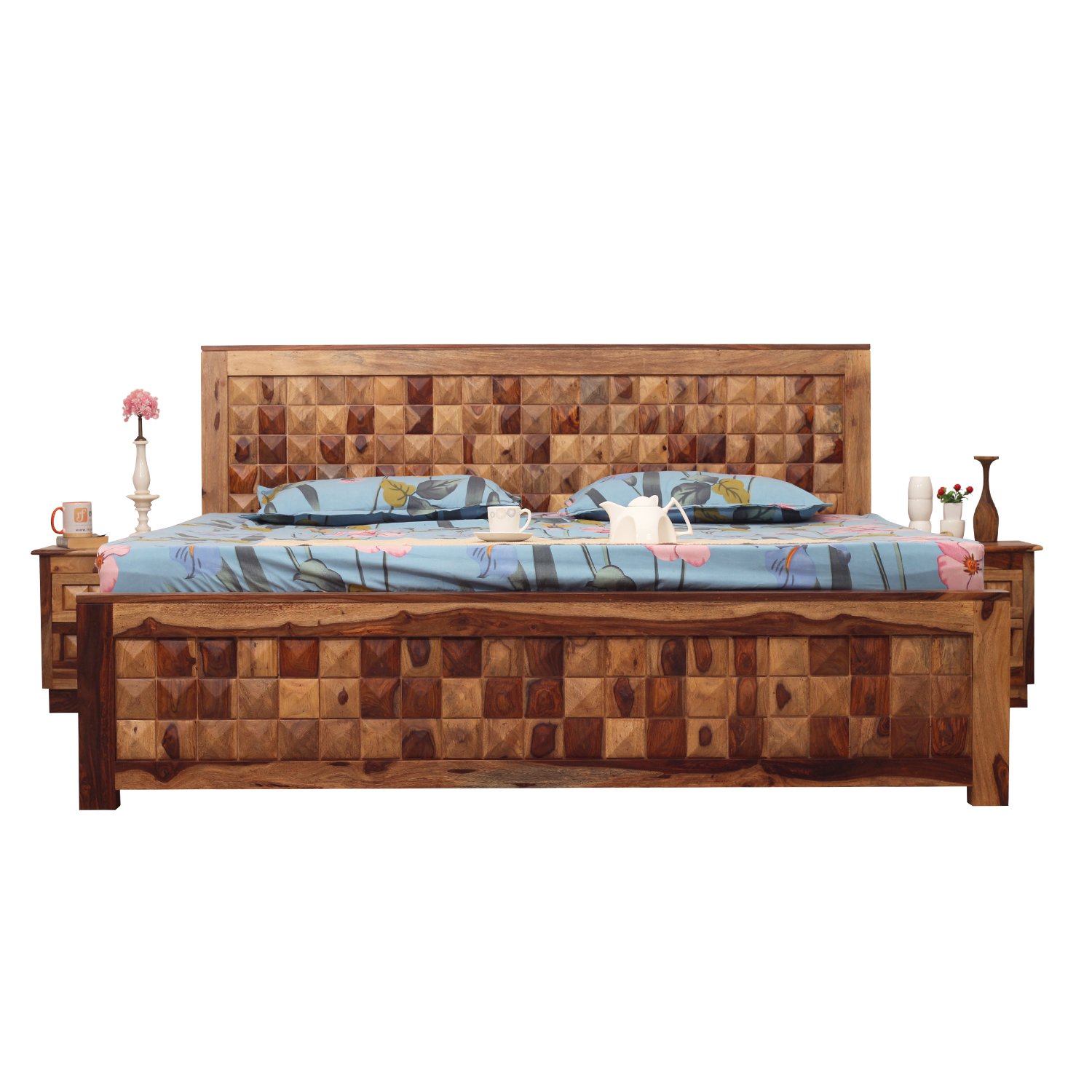 Introducing our premium solid wood king-size bed with a stunning diamond design on the front and leg side. This exquisite bed is crafted with precision and attention to detail.