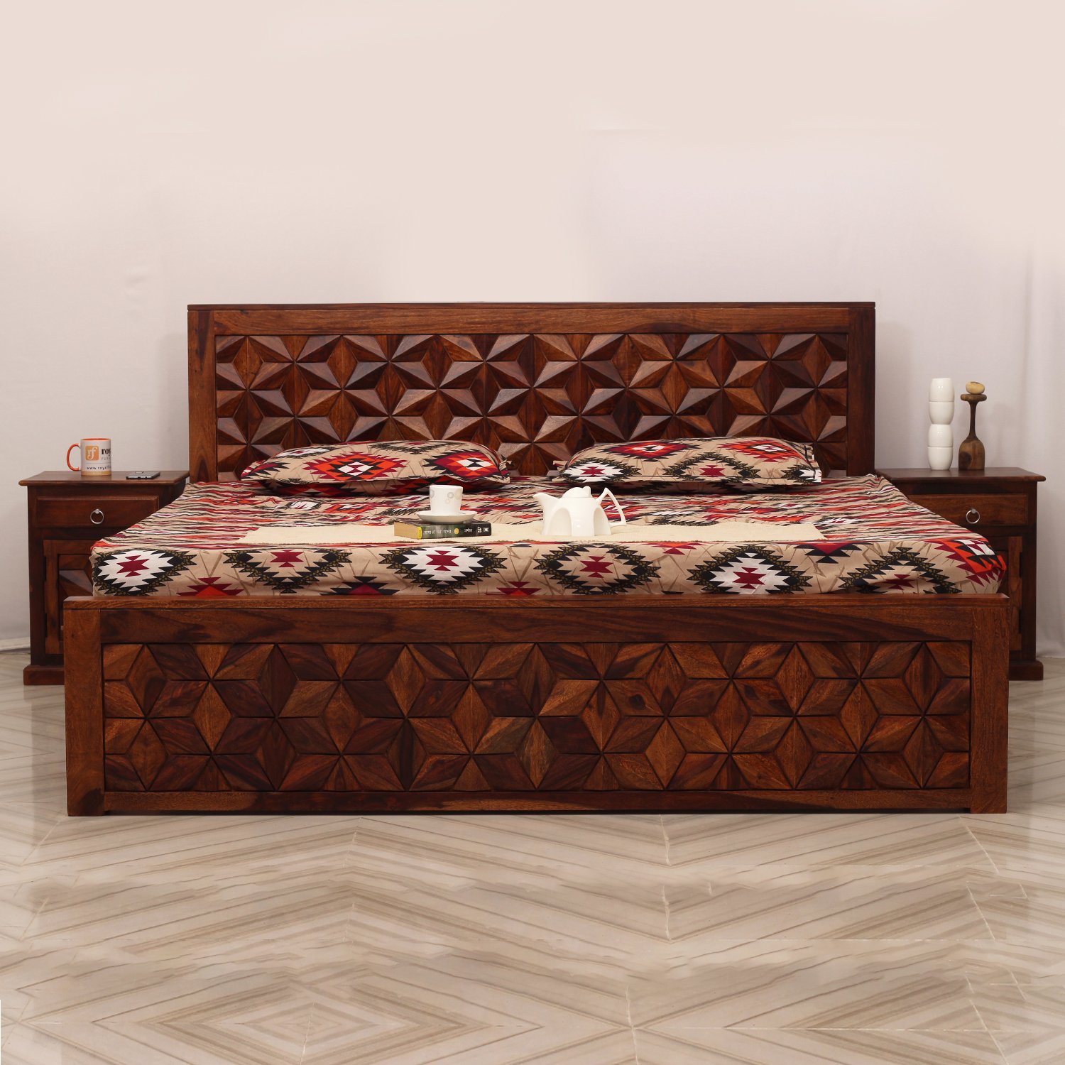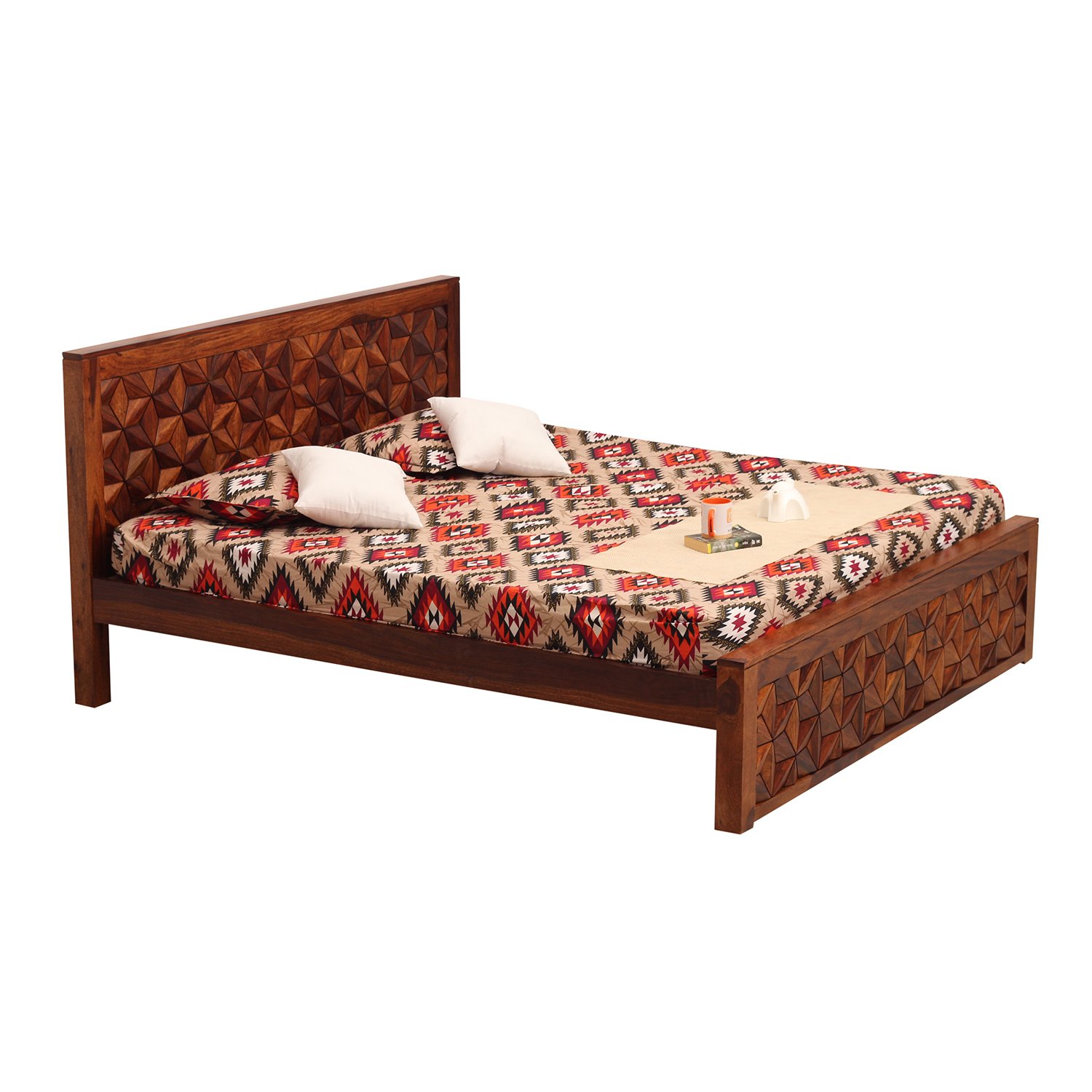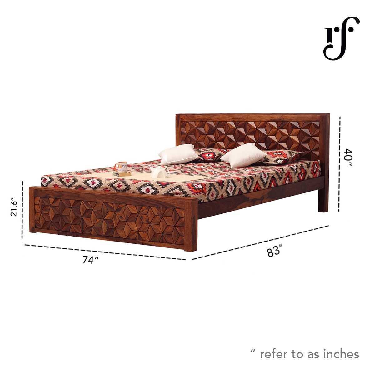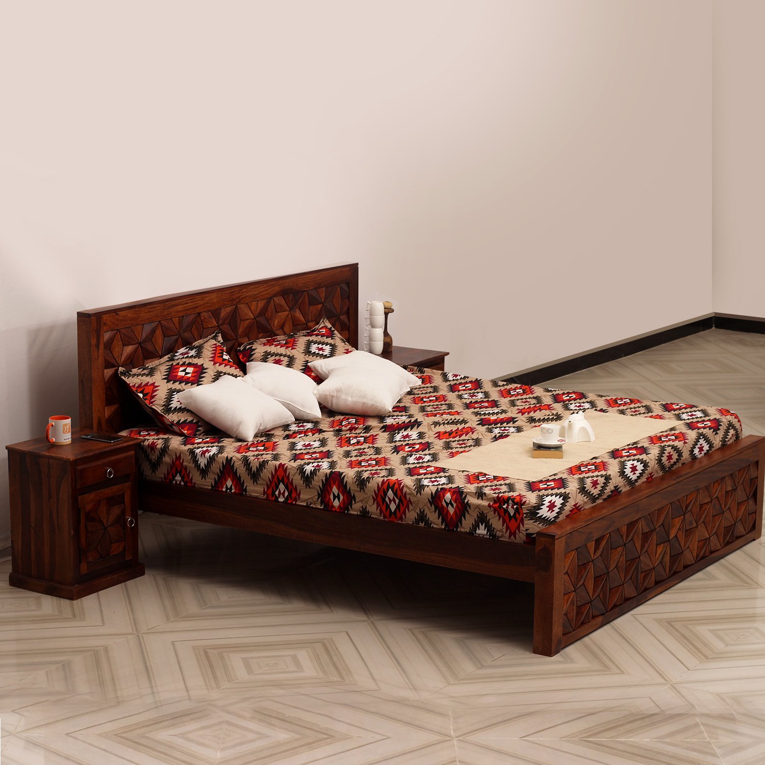 Introducing our premium solid wood king-size bed with a stunning diamond design on the front and leg side. This exquisite bed is crafted with precision and attention to detail.