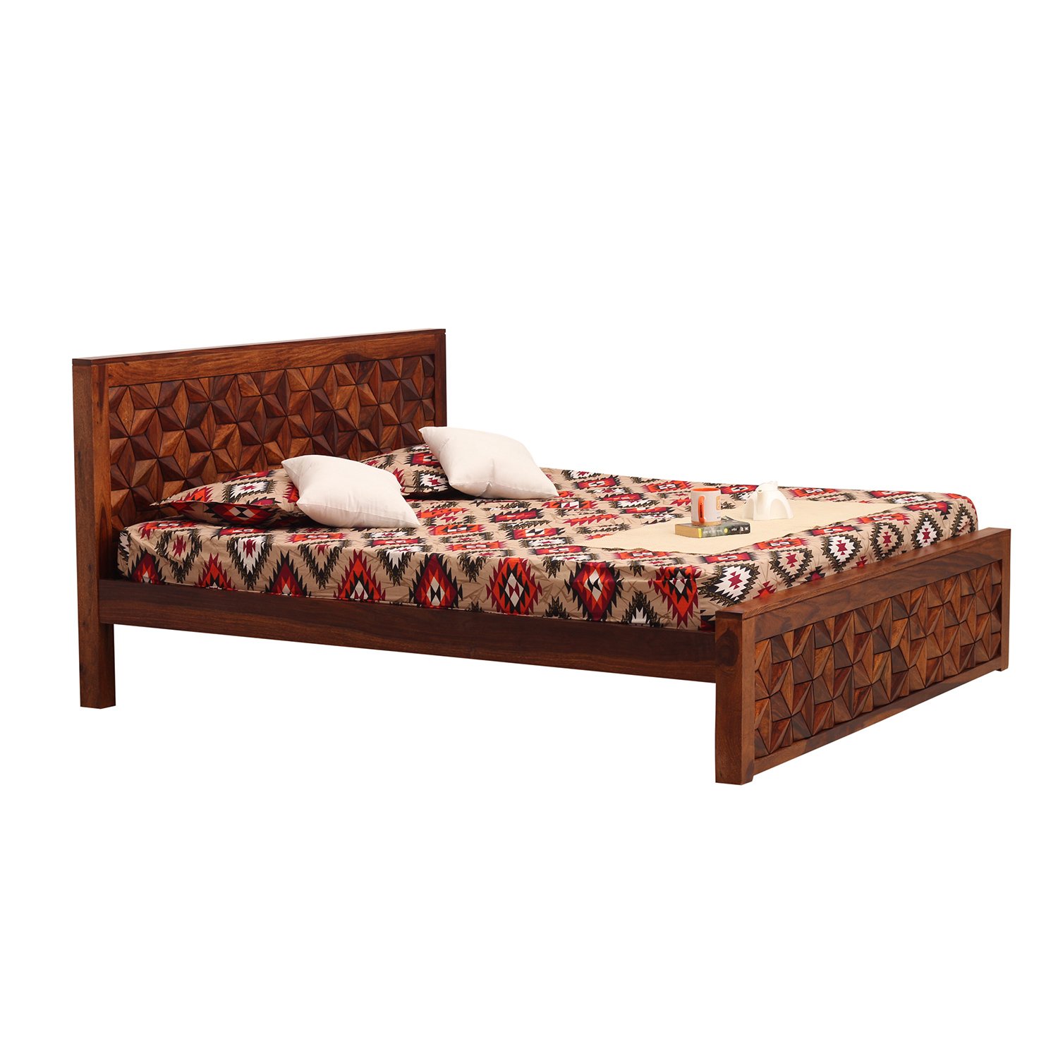 This bed is constructed using premium quality solid Sheesham wood, known for its durability and timeless beauty. The bed features a natural honey color with a matte finish, adding an elegant touch to any bedroom decor.