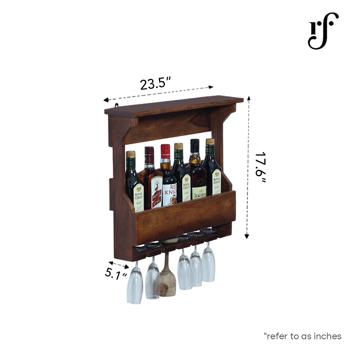 - Mini Bar Size: Top Length : 23.5 IN(60 CM),Top Deep – 5.4 IN(14 CM), Height:20 IN(51 CM),Bottle Space Length : 20.6 IN(52.5 CM),Bottle Space deep – 3.2 IN(8.5 CM), Glass Space: 6