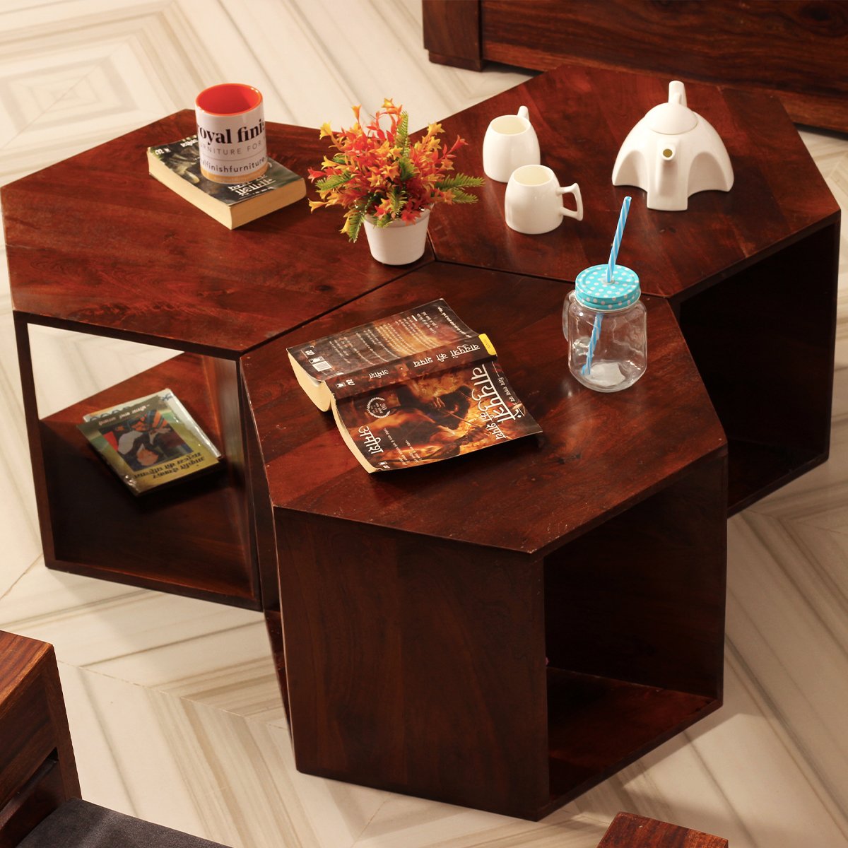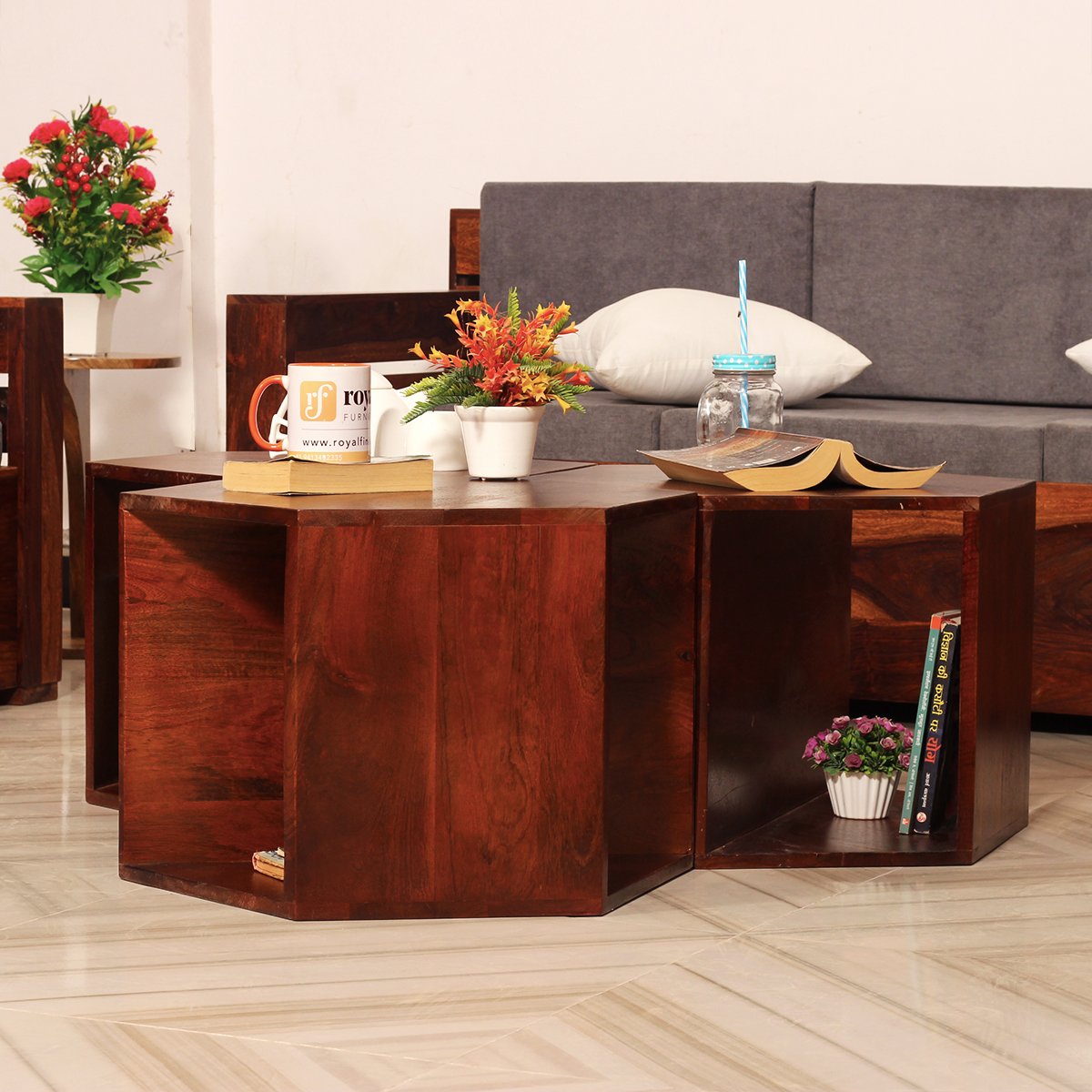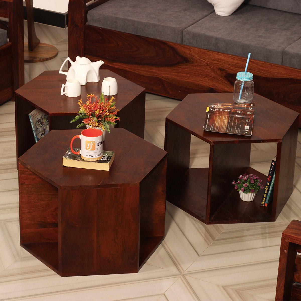 Upgrade your living space today with our set of three Sheesham Wood Hexagon Stools. With their durable construction, unique design, and excellent customer support, they’re the perfect addition to any home.