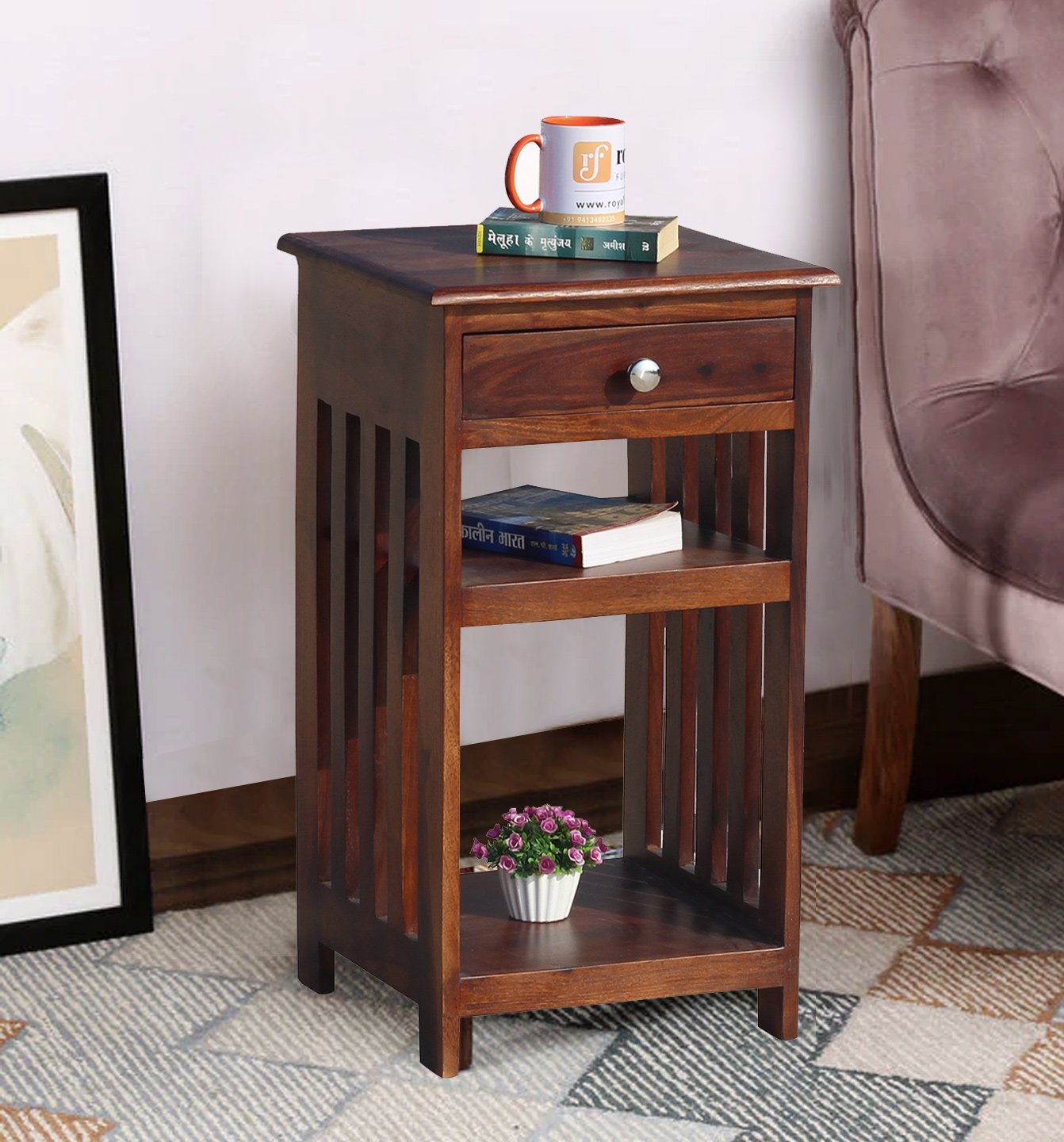 Overall, this premium quality and stylish wooden side table provide both functionality and elegance to your living room. Its compact size, durable construction, and natural wood finish make it a perfect choice for your home decor.