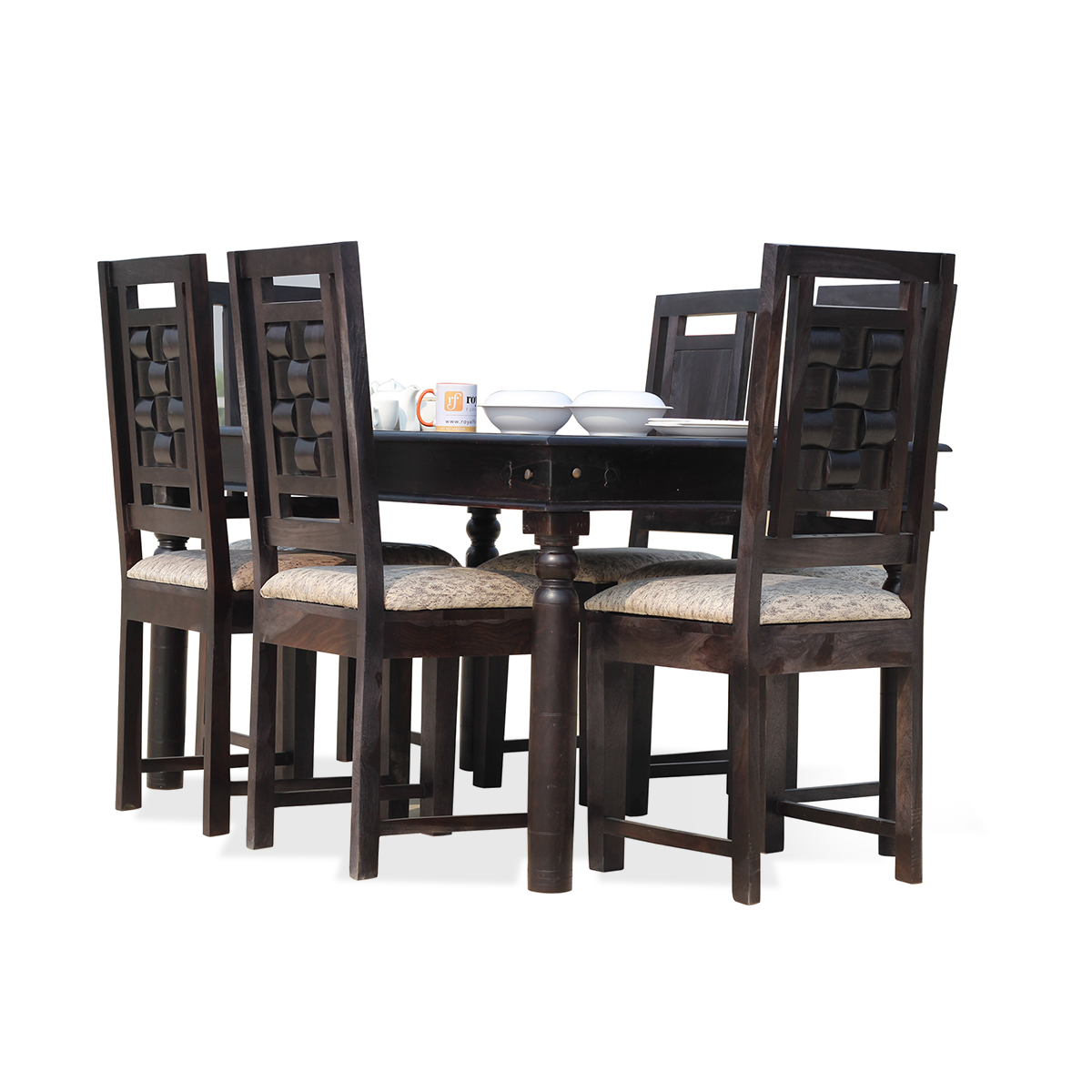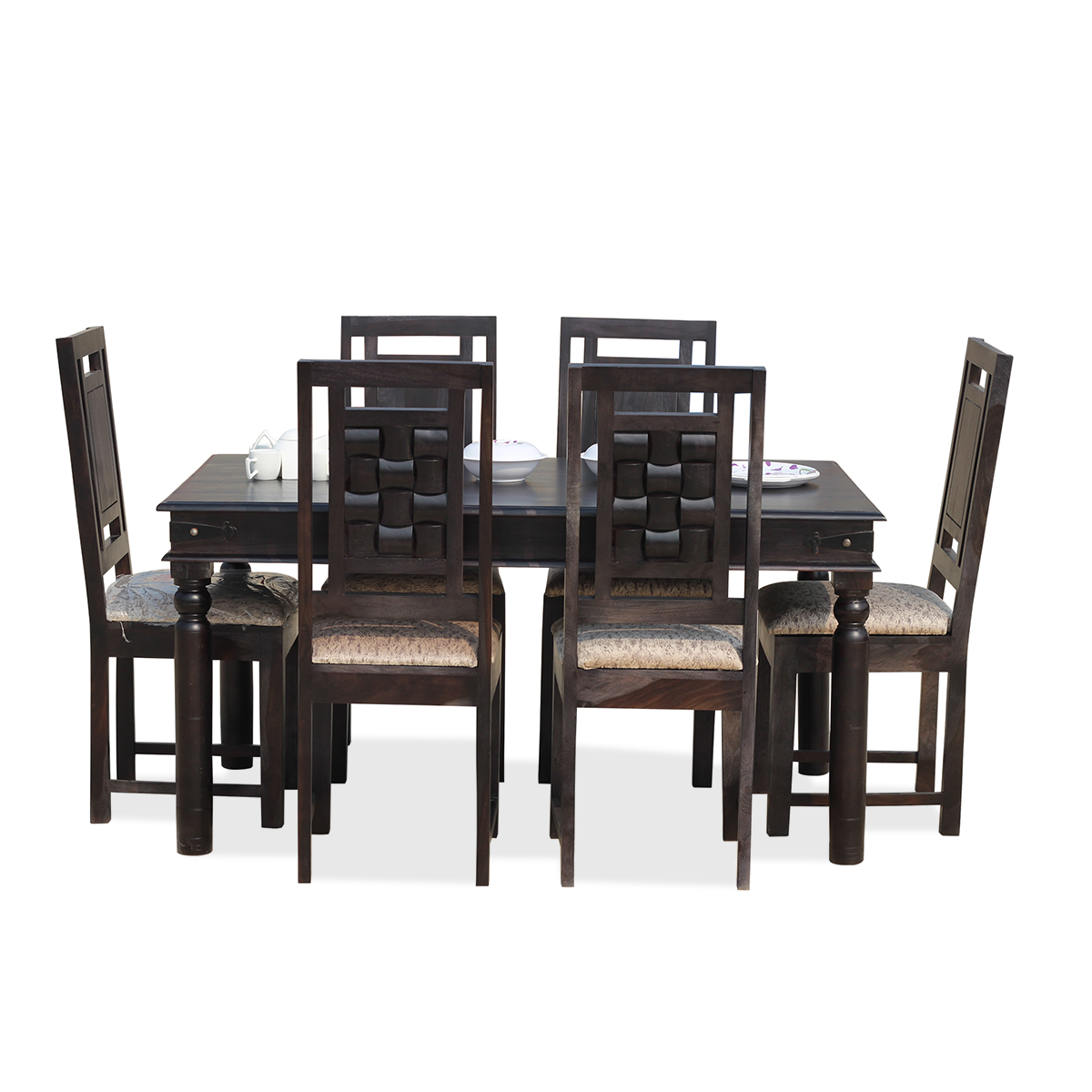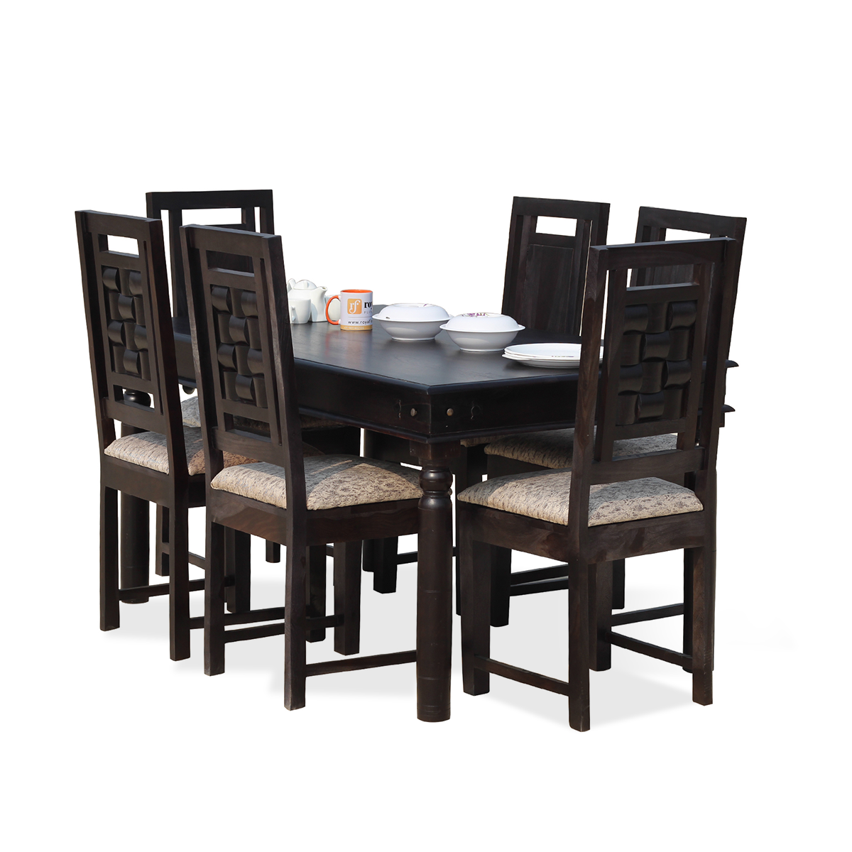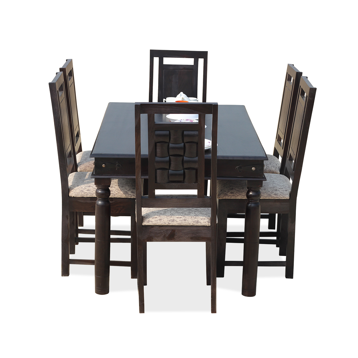 - 6 Seater Dining Table Size: Length – 59 IN(150 CM) ,Width – 36 IN(90 CM) , Height – 30 IN(76 CM), Chair Number Dimensions: No of Chair: 6(For 6 Seater), Length – 17.5 IN(44.5 CM), Width – 17.5 IN(44.5 CM), Height – 42 IN(107 CM)