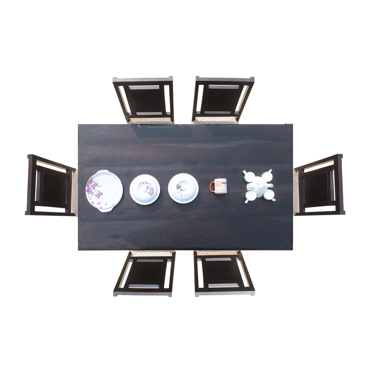 Thecsr Nivora 6 Seater Dining Set in Carbon Black In Sheesham Wood