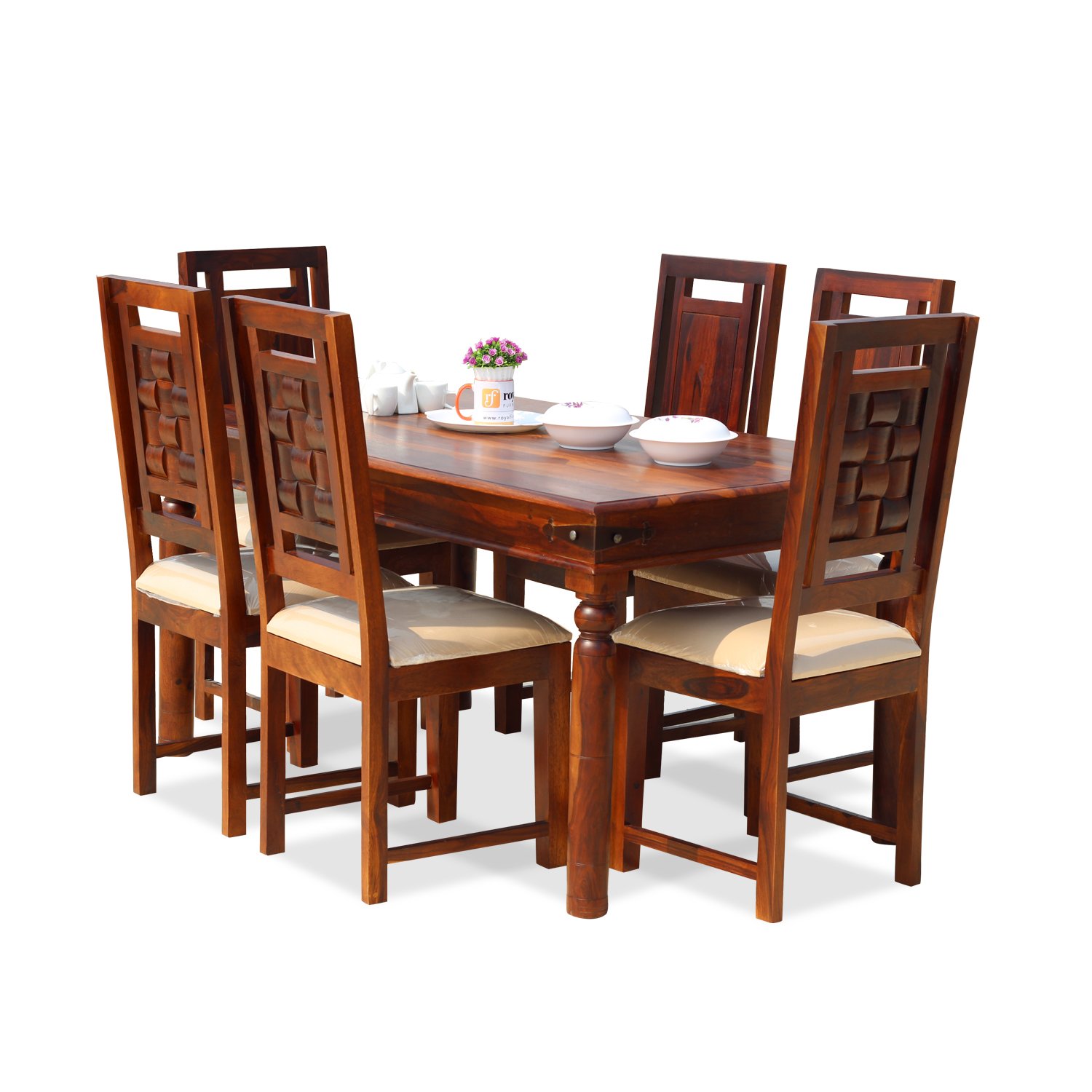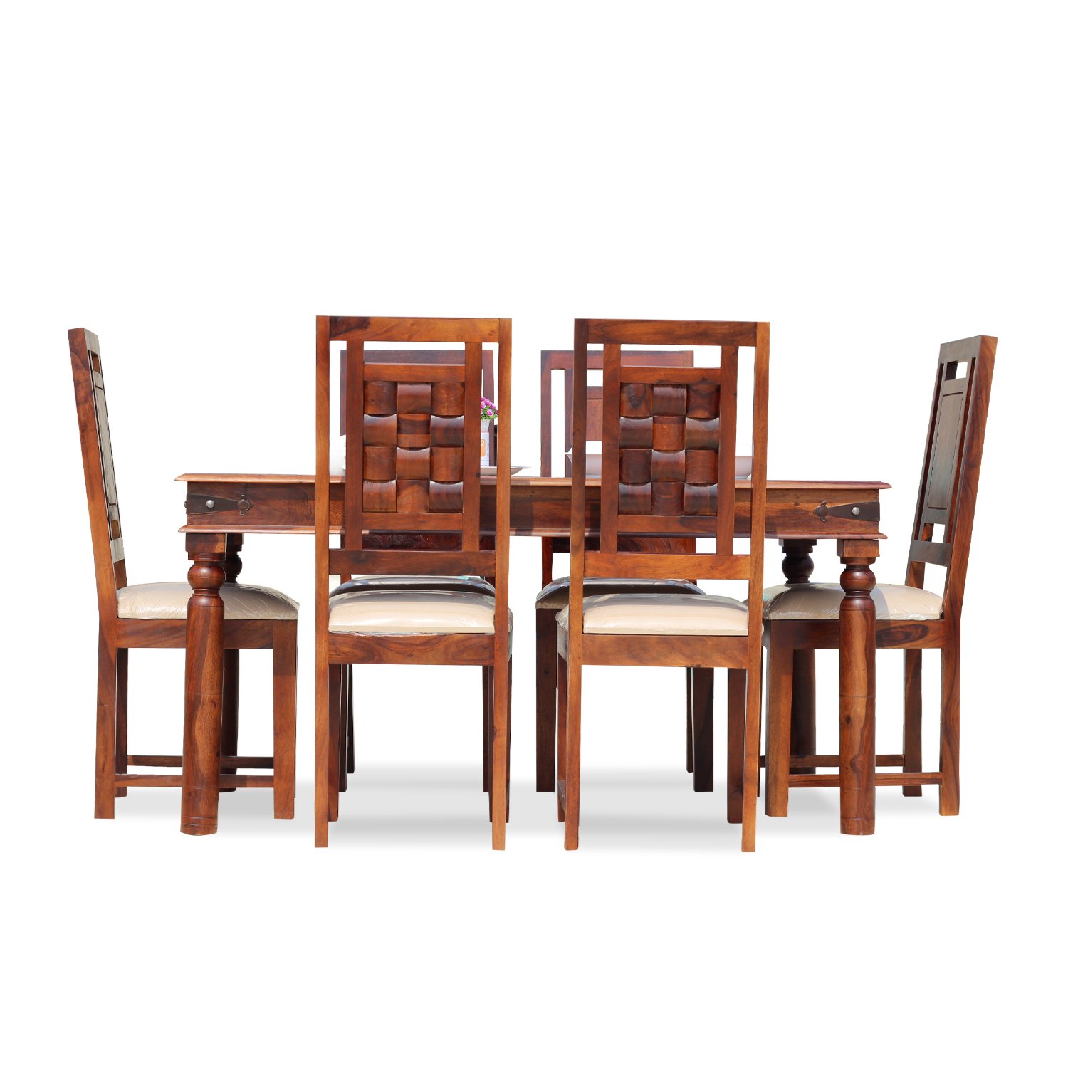 Thecsr Dali 6 Seater Dining Set in Natural Premium Furniture Sheesham Wood