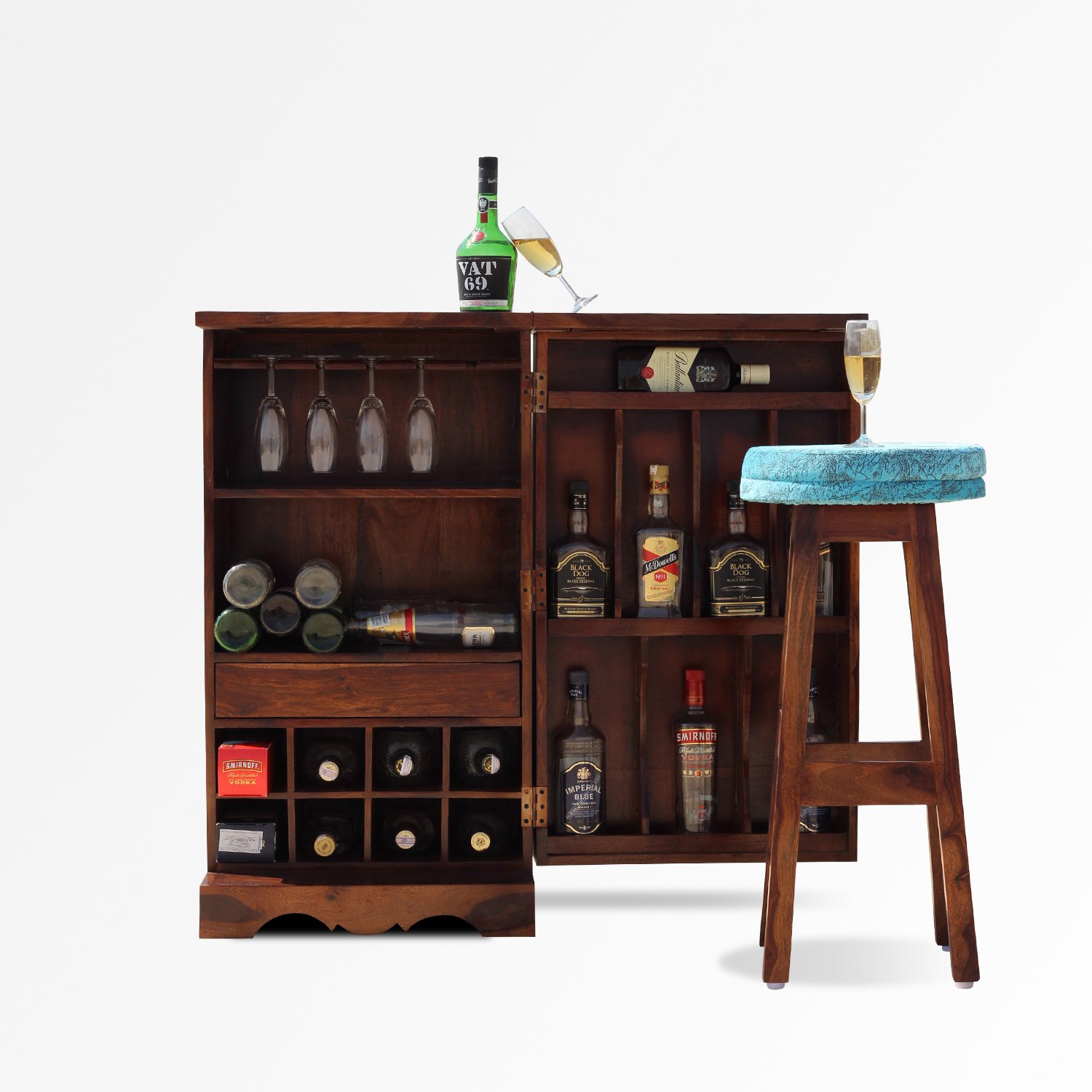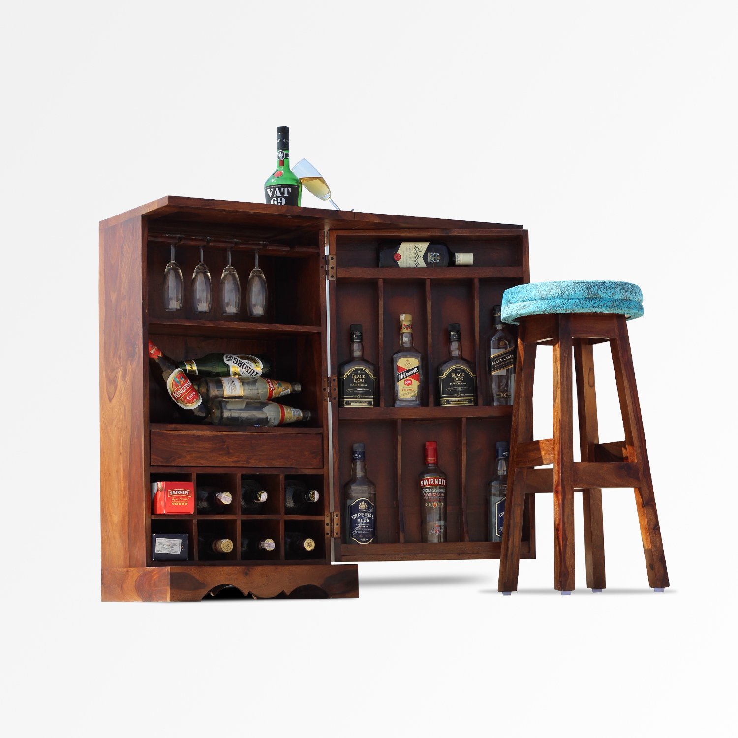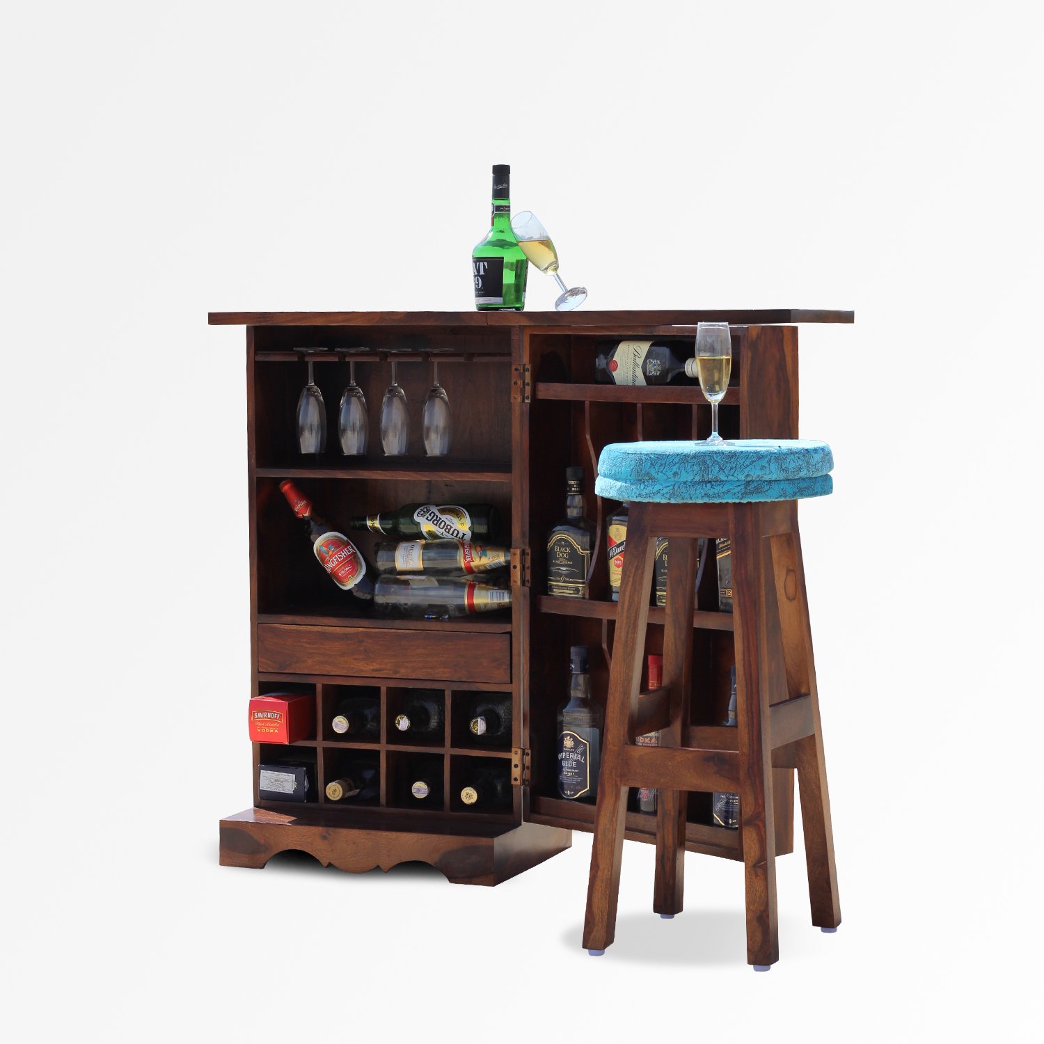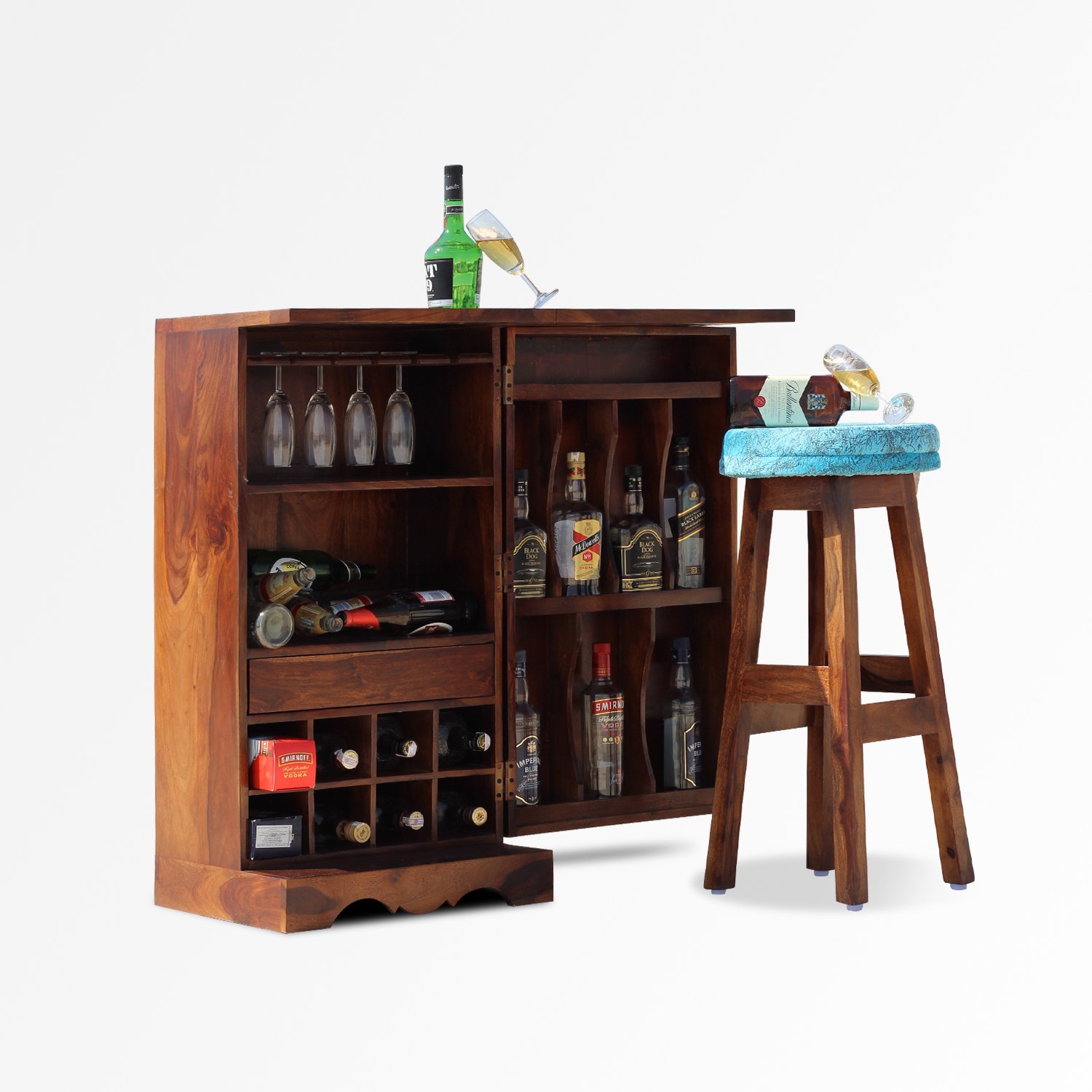 Thecsr Nivora Bar and Stool Cabinate In Premium Quality Sheesham Wood