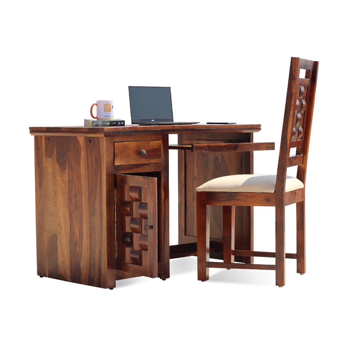 Thecsr Nivora CT with Keyboard tray Study Table & Chair in Sheesham Wood