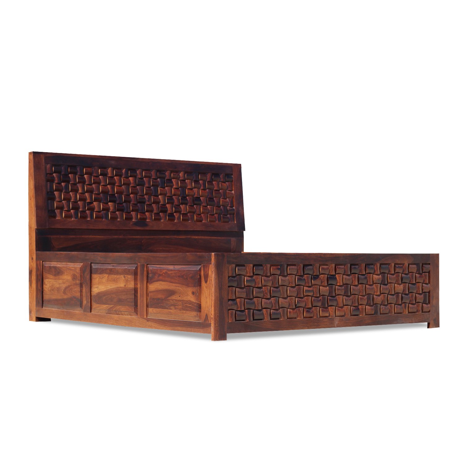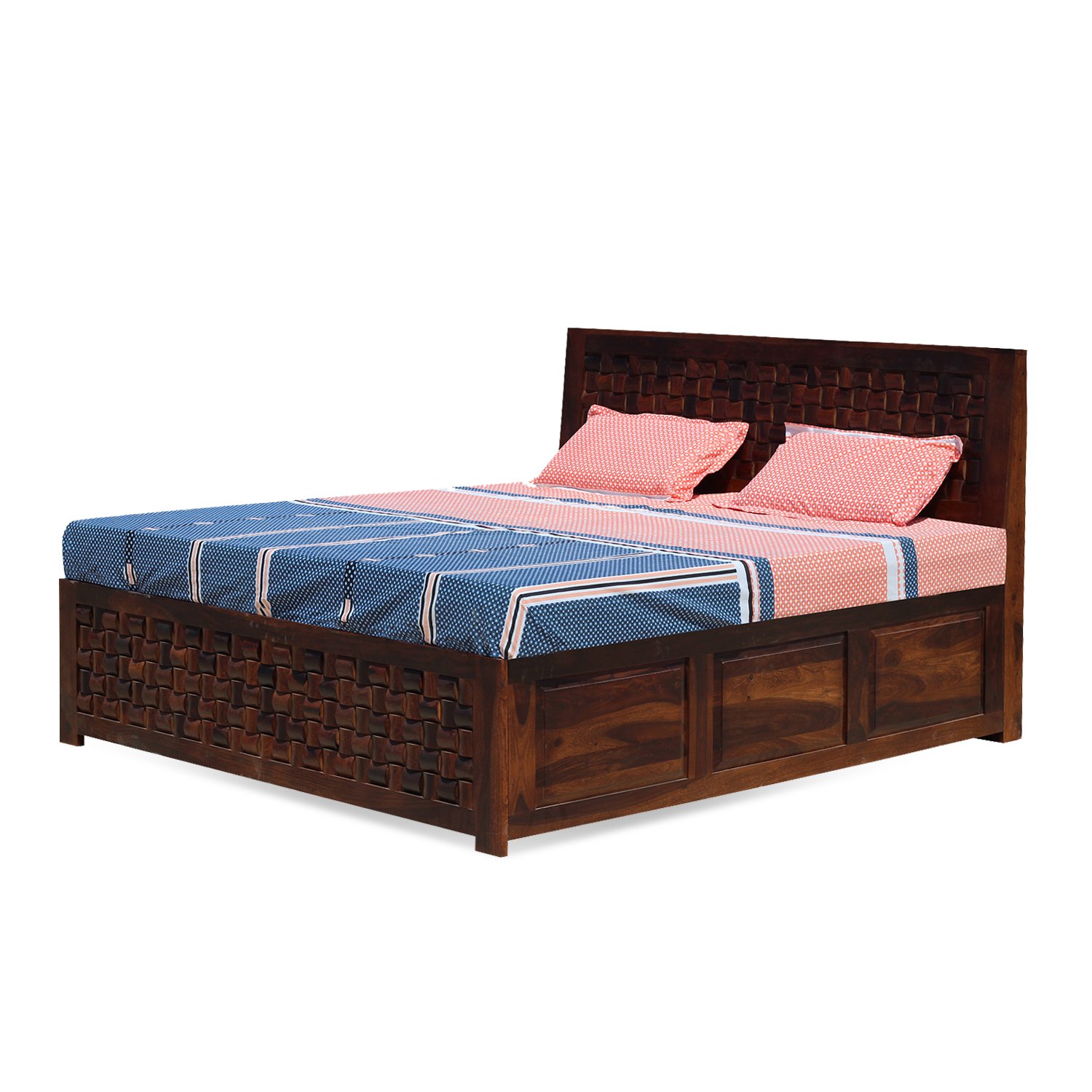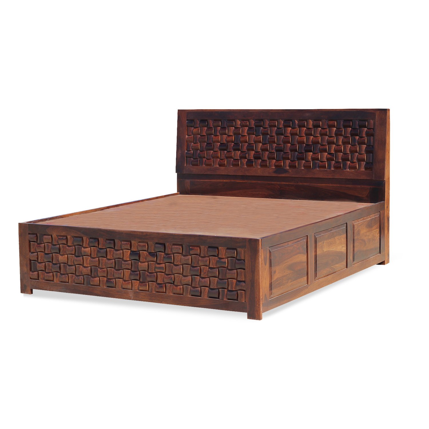 Thecsr Nivora King Size Storage Bed In Solid Sheesham Wood in Matte Finish