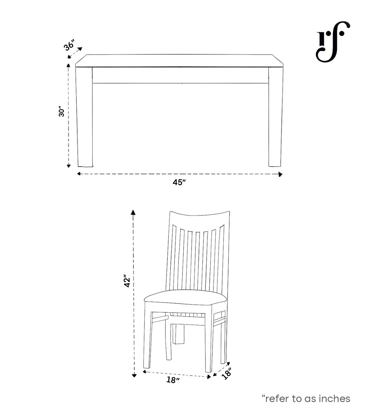 • 4 Seater Dining Table Size: Length – 45 IN(115 CM) ,Width – 36 IN(90 CM) , Height – 30 IN(76 CM), Chair Number & Dimensions: No of Chair: 4(For 4 seater) , Length – 17.5 IN(44.5 CM), Width – 17.5 IN(44.5 CM), Height – 42 IN(107 CM)