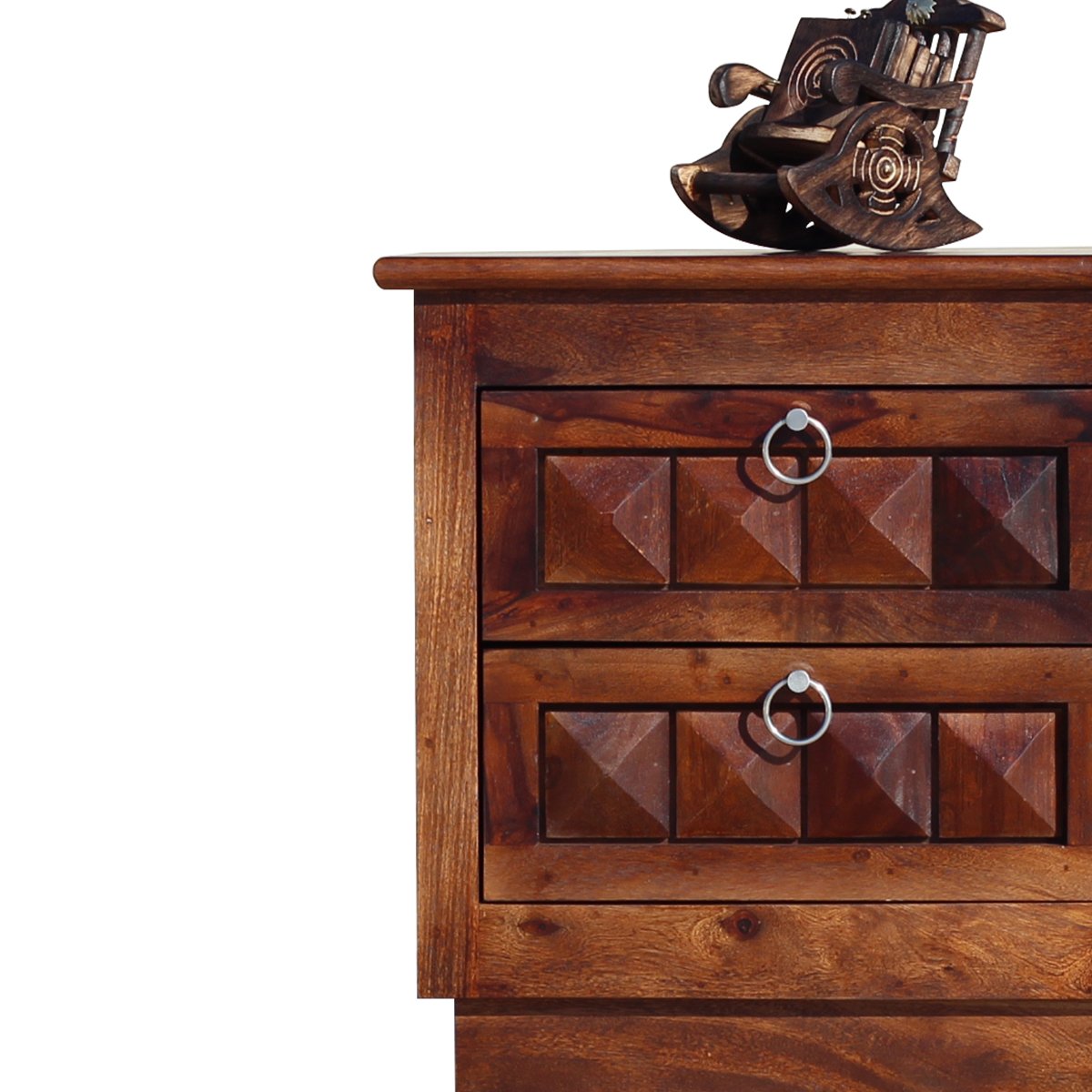 2. Material: It is crafted from solid Sheesham wood, ensuring long-lasting durability and high-quality furniture.